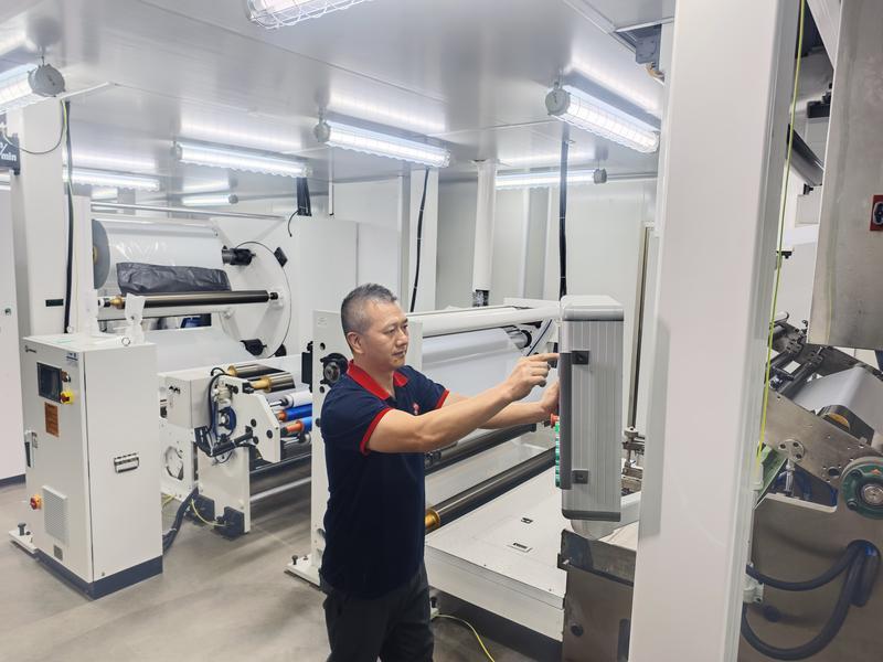 时下热门品牌,华为、联想、戴尔等品牌的手机、电脑,很可能就用到冠宝的电池标签材料。在冠宝的生产车间内,这里实现了自动化生产。只见工人调试机器的各项参数后,经过一系列工序,一张张薄膜从机器中生产出来。“这些从机子上下线的薄膜,就是用作电池阻燃标签的。”惠州市冠宝新材料有限公司生产经理唐峰说,“这些膜加入了多种物质,可以很好地阻燃,我们的阻燃胶水技术全球领先。”目前,该公司阻燃标签原材配套华为、联想、任天堂等品牌,全球市场占有率前二。